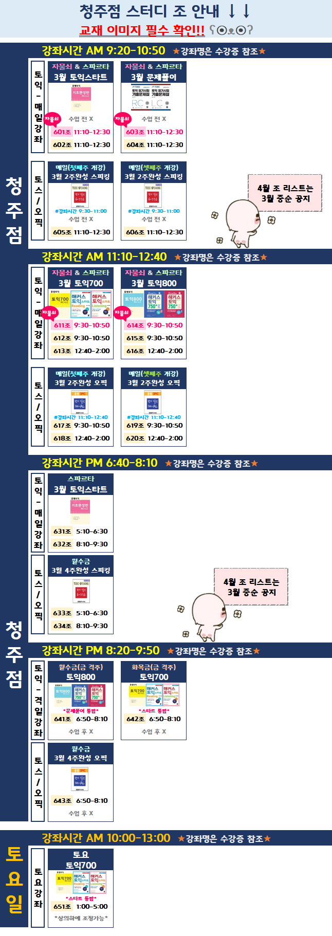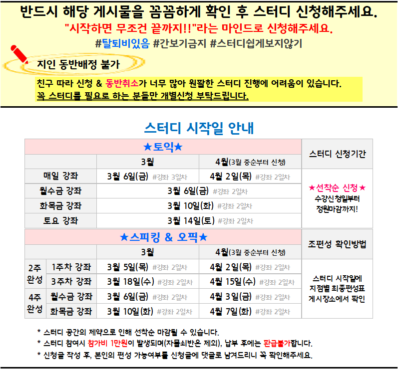 공지사항 청주 3~4월 스터디안내
