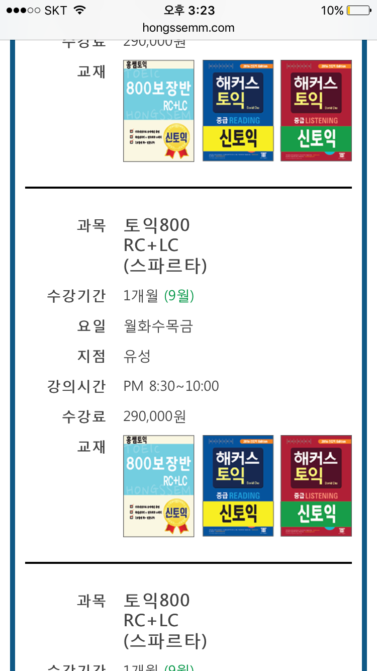 9월 토익 800반 듣고 싶은데요 둔산점에는 저녁시간표 없나요ㅠㅠ? 10월 밖에 없더라구요.. 유성점은 넘 멀어서요ㅠㅠㅠㅠ! 그리고 800반 수업 방식은 어떻게 진행되나요??