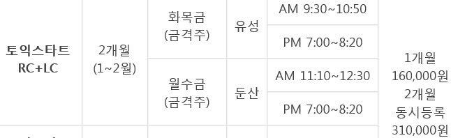 이번에 2달동안 스타트+700반 수업을 듣고싶은 학생 입니다.