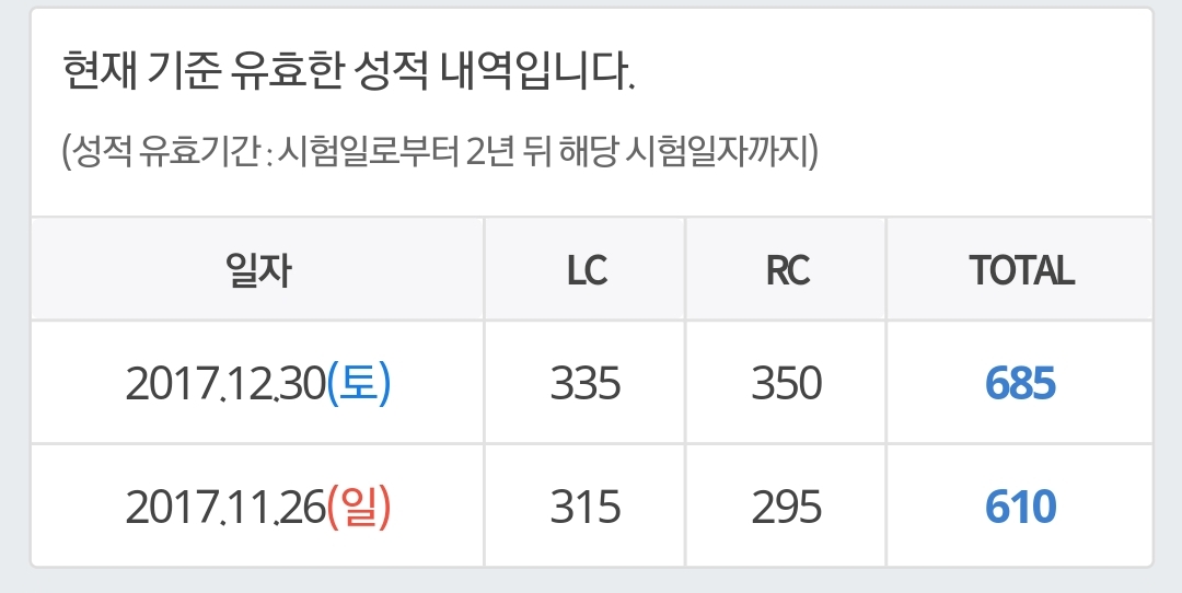 첫 번째 파일은 제가 작년에 봤던 토익 성적입니다.