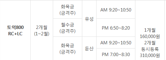 토익 800 (1~2월반) 수강문의
