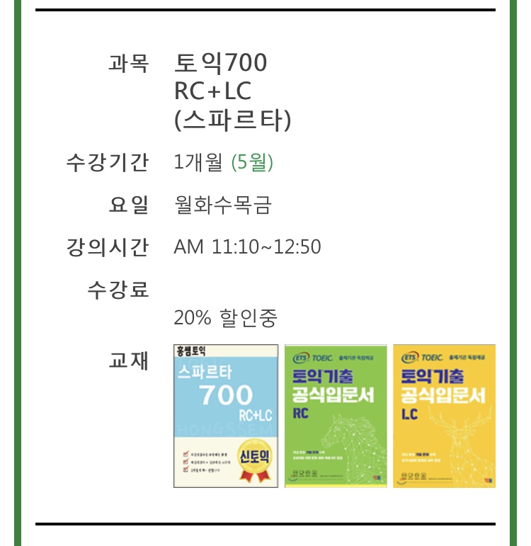 5월에 둔산점 토익700 rc+lc(스파르타) 11시10분꺼 진행하시는 강사분 성함 알수있을까요