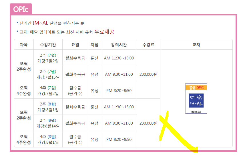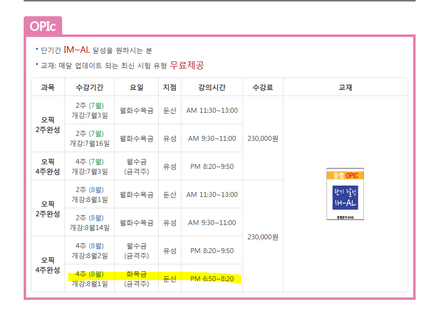 8월 개강 오픽 4주완성 (둔산점)