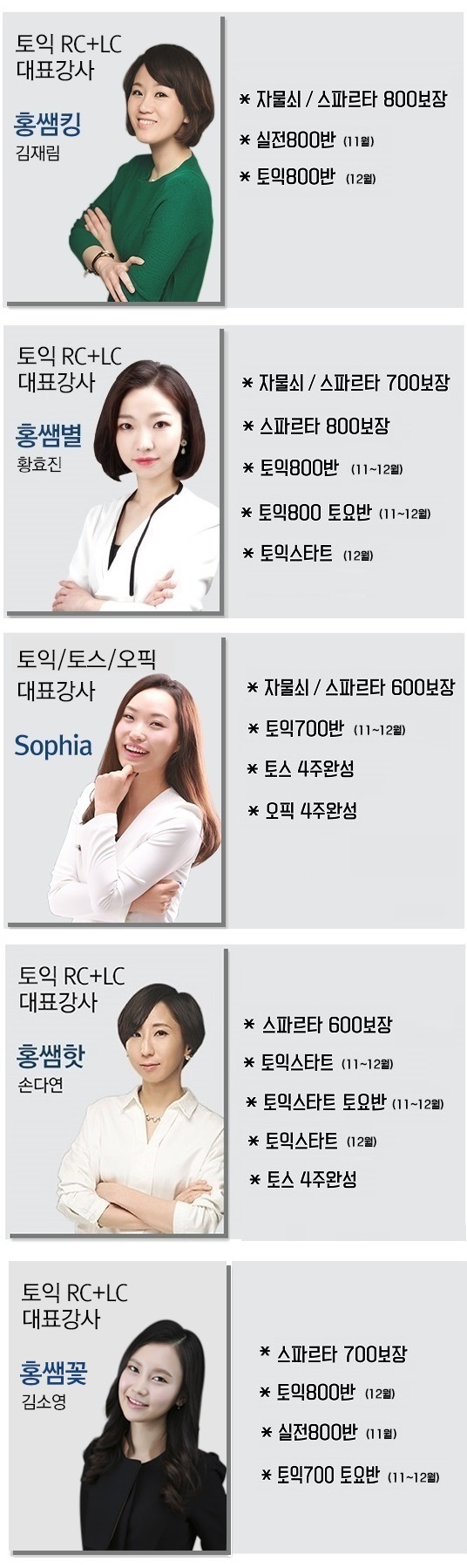강사별 과목 안내