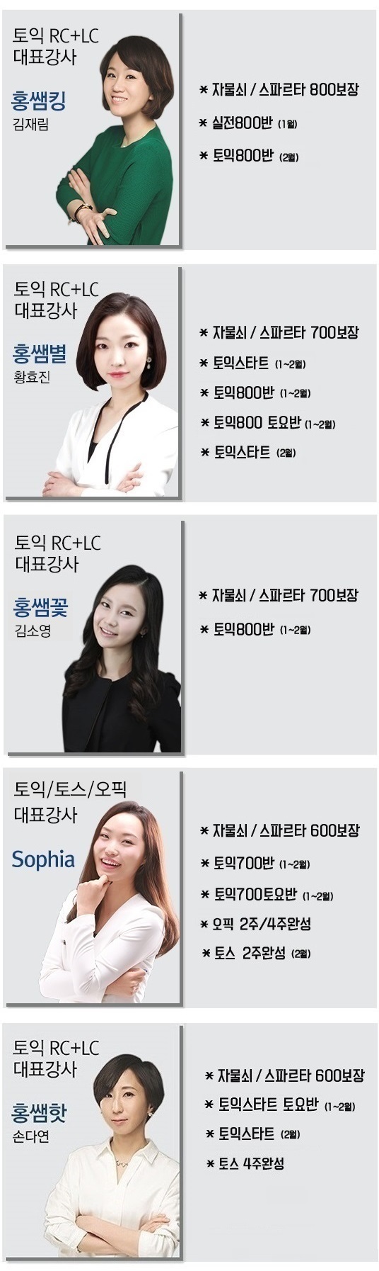 강사별 과목 안내