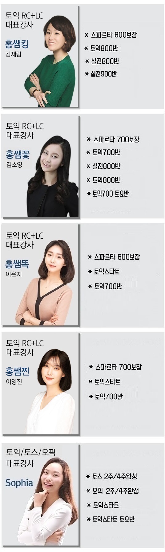 강사별 과목 안내