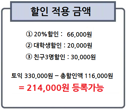 나. 친구 3인, 동시 등록시, 각각 3만원 할인