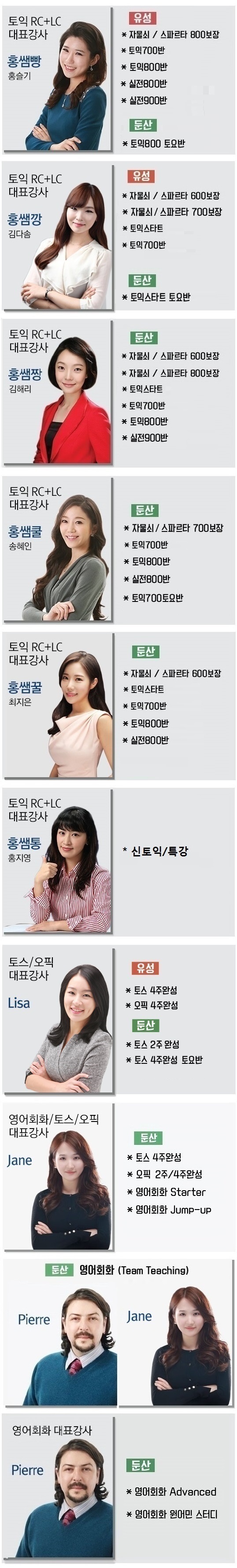 강사별 과목 안내