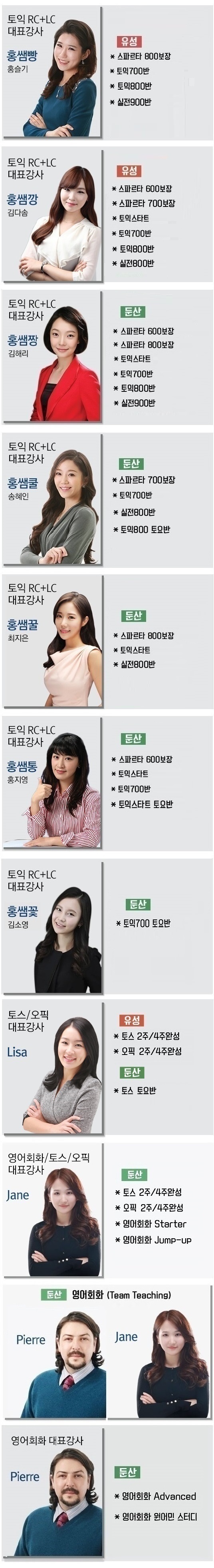 강사별 과목 안내
