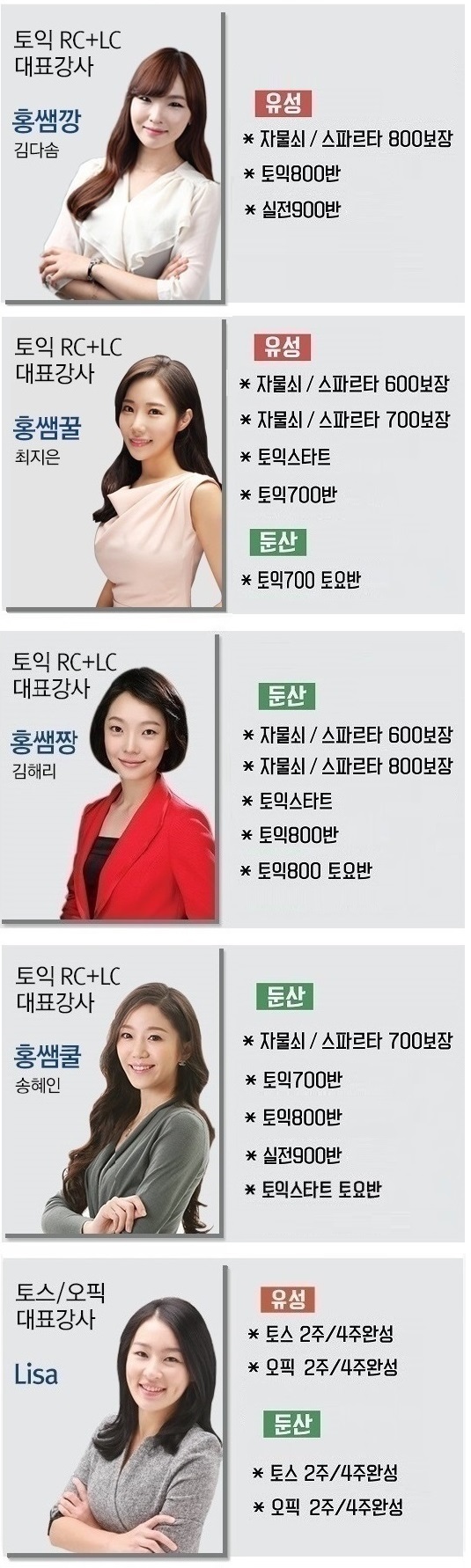 강사별 과목 안내